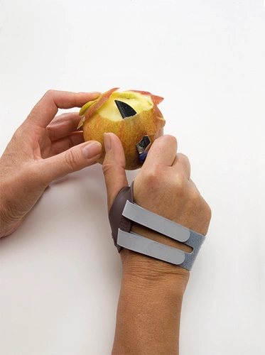 Die Orthese stabilisiert das Daumensattelgelenk und positioniert den Daumen in einer funktionalen Stellung, wodurch der sogenannte „Daumenbogen“ entsteht. Während des Einsatzes der Hand bleibt dieser stabil und sorgt für eine gute Greiffunktion. Die angrenzenden Gelenke, darunter das Handgelenk, bleiben frei und werden nicht in ihrer Bewegungsfreiheit eingeschränkt. Auf diese Weise wird eine optimale Handfunktion gewährleistet.