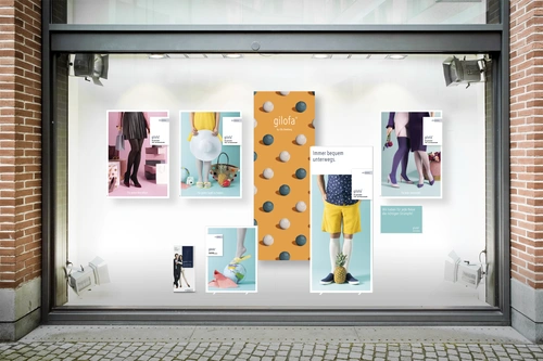 Die Gilofa Dekoration für Frühjahr/Sommer 2019 setzt Reise- und Vitalstrümpfe farbenfroh in Szene.