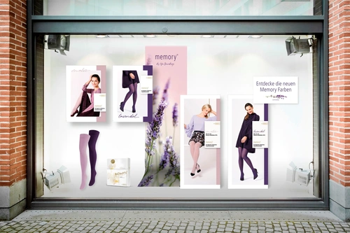 Inspiriert von den wohltuenden Eigenschaften der Pflanzenwelt, steht die Dekoration für Memory und Memory Aloe Vera ganz im Zeichen von Eleganz und Frische. Extralange Fahnen dienen als Laufsteg für die eleganten Kompressionsstrümpfe. Die Gilofa Dekoration macht Lust auf die Urlaubssaison 2019 und setzt Reise- und Vitalstrümpfe in den Kontext von Strandurlaub und Backpacking-Tour. Für urbanes Flair im Schaufenster sorgt unterdessen die Orthopädie-Deko zu Dynamics Plus und Push. Der Pulsschlag der Stadt und individuelle Freiräume verschmelzen zu einer stimmungsvollen Atmosphäre.