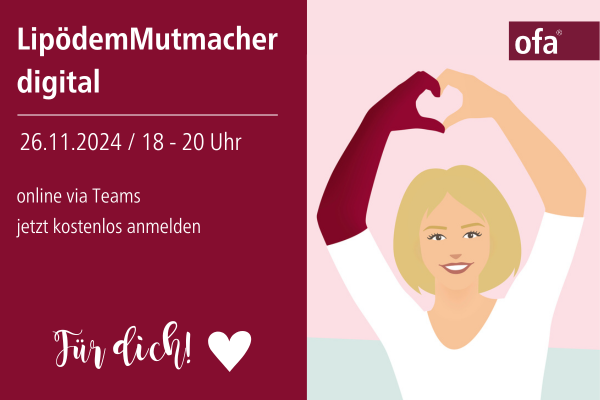 Leidest du an Lip- oder Lymphödem und suchst nach umfassenden Informationen und Unterstützung? Dann ist die Online-Veranstaltungsreihe „LipödemMutmacher digital“ von Ofa genau das Richtige für dich! Am 26. November 2024 erwartet dich eine spannende Talkrunde mit zwei renommierten Expertinnen, die dir wertvolle Tipps und Ratschläge zu den Themen Sport, Ernährung und Achtsamkeit geben werden. Die zweistündige Veranstaltung richtet sich speziell an Betroffene und Angehörige und bietet die Möglichkeit, Fragen zu stellen und sich mit anderen auszutauschen.