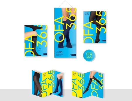 Als Lifestyleprodukt mit frischem Look spricht Ofa 365 vor allem eine jüngere Zielgruppe an. Das spiegelt sich auch in der neuen Dekoration wider. Mit auffallenden Farben können so die Wellness-Strümpfe am Point of Sale beworben oder durch eine Platzierung im Schaufenster Passanten auf das Strumpf-Sortiment aufmerksam gemacht werden. Bestehend aus einer 130 cm langen Fahne, zwei DIN A1 Postern, zwei Zickzack-Aufstellern mit einer Höhe von knapp 60 cm und einem Aufkleber für glatte Oberflächen ist die neue Ofa 365 Dekoration ein echter Blickfang. Ab zehn Einheiten der Wellness-Strümpfe bekommen Fachhändler die frische Deko kostenlos dazu.
