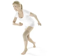 Die Dynamics Kniebandage Thermo hat mit 17 Prozent Angora und 9 Prozent Wolle im latexfreien Gestrick einen angenehm wärmenden Effekt. Gleichzeitig erfüllt sie alle Anforderungen einer funktionellen Bandage. Medizinisch wirksame Kompression stabilisiert das Knie mittels Propriozeption. Eine Ringpelotte um die Kniescheibe massiert die Gelenkregion und fördert so die Durchblutung sowie den Abbau von Schwellungen. Erhältlich in sieben Größen ist die Dynamics Kniebandage Thermo für Oberschenkelumfänge bis 59,5 cm geeignet. Als anerkanntes medizinisches Hilfsmittel kann sie unter der Hilfsmittelnummer 05.04.01.0033 verordnet werden. Aufgrund ihrer wärmenden Wirkung ist sie besonders bei rheumatischen und degenerativen Erkrankungen ohne Entzündungen zu empfehlen.