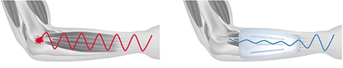 Für die Fixierung der Plus-Pelotte am Unterarm sorgt eine komfortable Strickbandage. Dank leichter Kompression und anatomischer Passform sitzt sie angenehm und sicher. Die Funktionen der Bandage verschmelzen mit dem innovativen Wabendesign, für das Dynamics Plus Produkte bereits mehrfach prämiert wurden. Das latexfreie Mikrofasergestrick mit offenporiger Feinstruktur gewährleistet hohe Atmungsaktivität.