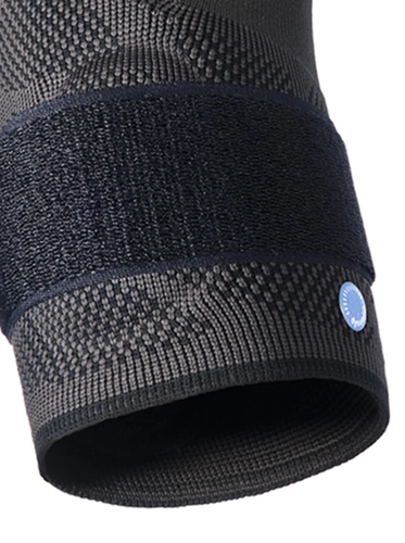 In der Akutphase einer Erkrankung kann der abnehmbare Klettgurt durch punktgenauen Druck die Zugrichtung der Sehne weg vom strapazierten Gelenk führen. So wirkt die Dynamics Plus Ellenbogenbandage wie eine Spange für zusätzliche Stabilisierung.